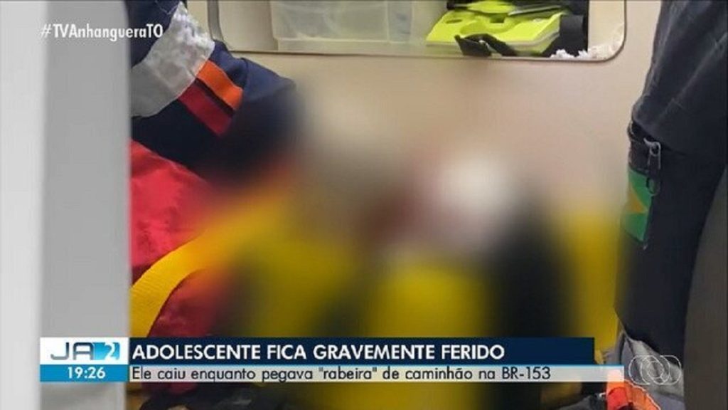 Um adolescente de 16 anos ficou gravemente ferido após pegar “rabeira” em um caminhão na BR-153, em Araguaína, no norte do estado. O rapaz se desequilibrou e bateu o rosto no chão, chegando a perder alguns dentes.