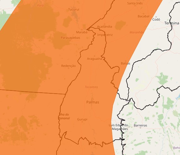 Alerta laranja para o Tocantins durante o fim de semana