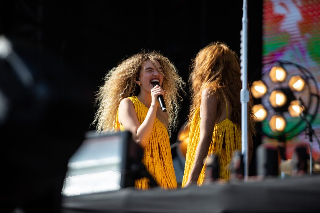 A dupla Anavitória durante show no Lollapalooza 2023, em São Paulo