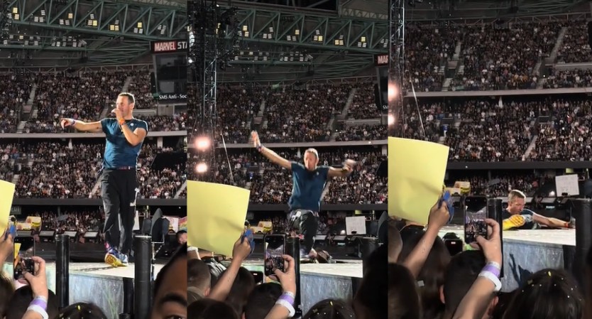 Chris Martin, vocalista do Coldplay, caiu em um buraco no palco durante um show da banda em Melbourne, na Austrália.