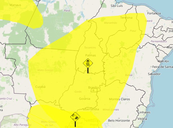 Alertas de baixa umidade estão ativos para o Tocantins nesta segunda-feira (8). Um amarelo, de perigo potencial prevê que a umidade vai variar entre os níveis de 30% e 20%. No laranja, que alerta para o perigo, a unidade pode ir de 20% até 12%.