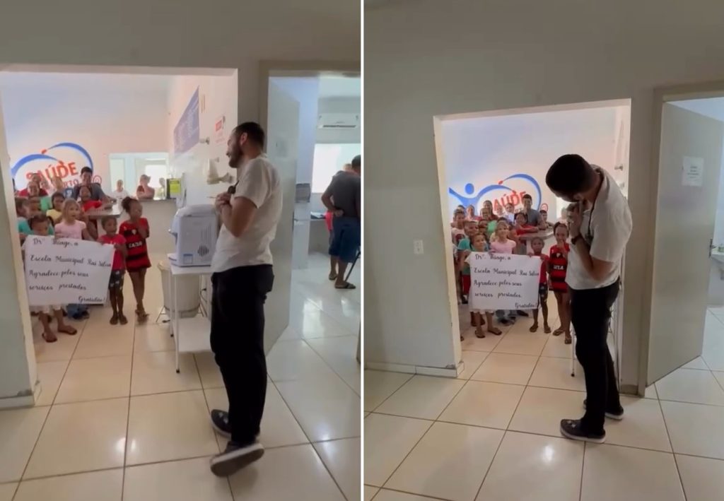 Cantando a música ‘Você é Especial’, dos cantores Daniel & Samuel, crianças agradeceram pelo trabalho do médico Thiago de Moura Arruda. O momento aconteceu em uma unidade de saúde de Lagoa do Romão, povoado da cidade de Peixe, região sul do Tocantins. Nas redes sociais, o médico comentou sobre a homenagem.