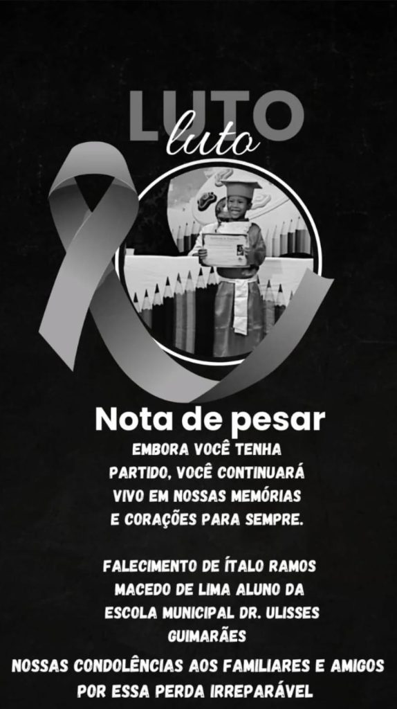 Nota de pesar da escola Ulisses Guimarães sobre a morte de Ítalo Ramos