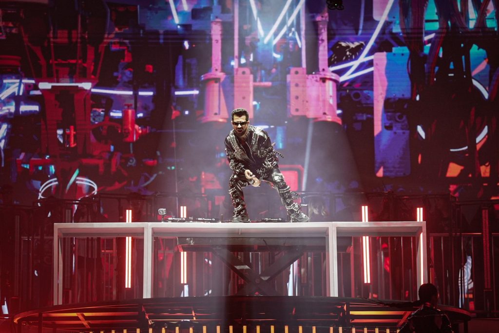 O futuro distópico do figurino e do cenário em nada combinou com a proposta do show. Dificilmente a trilha de um filme tipo “Mad Max” teria canções sobre jogar a mão para o alto, sentar, festejar, bumbum e similares. Mas a disparidade entre a parte visual e a musical foi detalhe perto da participação de Tília, uma nepo baby do pop.