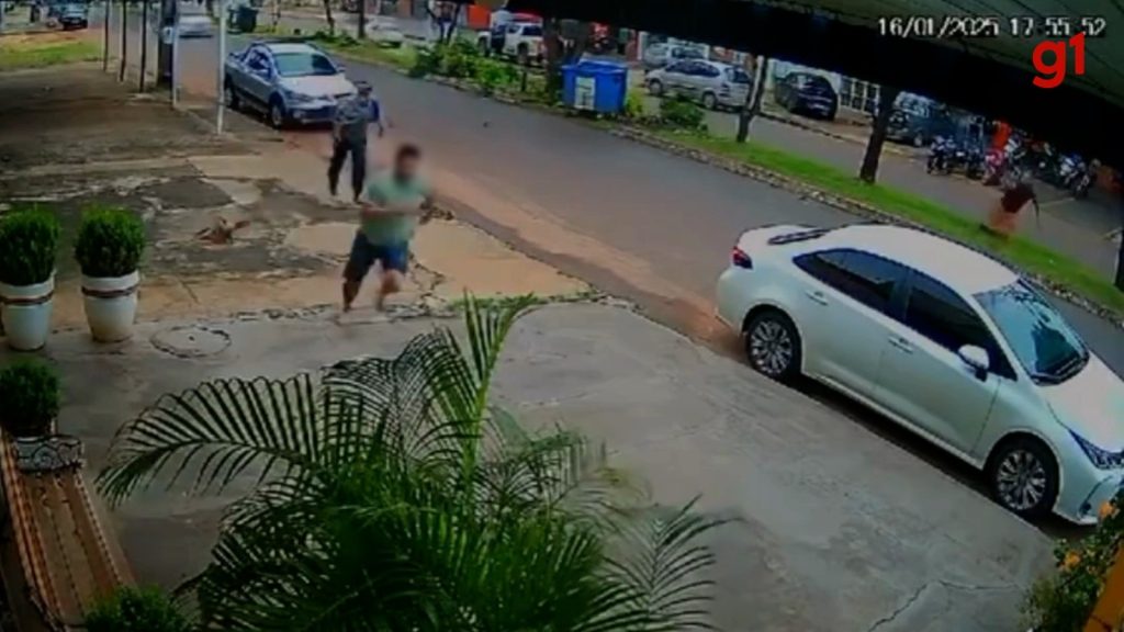 Participe do canal do g1 TO no WhatsApp e receba as notícias no celular.Imagens de câmera de segurança mostram que o homem cortava uma árvore do canteiro, até que o suspeito sai de um estabelecimento, apontando a arma. A vítima começa a correr, joga a motosserra na calçada e é perseguida pelo suspeito, que dispara.