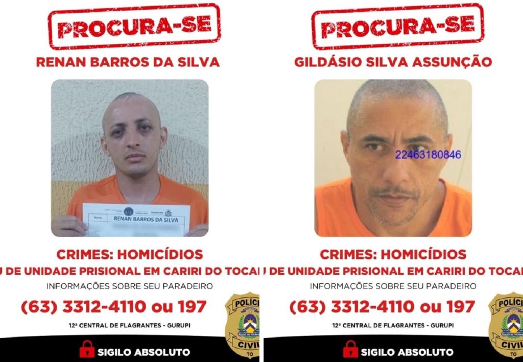 O outro fugitivo é Gildásio Silva Assunção, de 47 anos, que também responde por crime de homicídio. A Secretaria de Cidadania e Justiça, responsável pelo sistema prisional do Tocantins, ainda não enviou posicionamento sobre o caso.