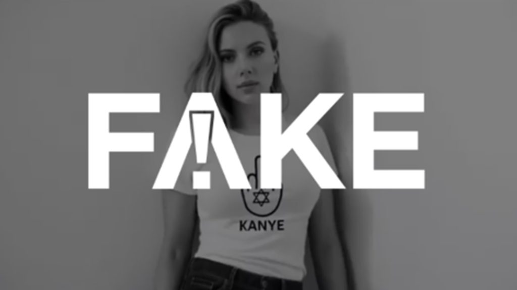 Autor do registro é criador de conteúdos que usam inteligência artificial, e ferramentas de checagem apontaram o uso desse recurso. Além disso, o Instagram sinalizou que vídeo é falso, e a atriz Scarlett Johansson protestou contra o uso de sua imagem sem autorização. É #FAKE vídeo em que famosos usam camisetas com imagem da estrela de Davi em mão que mostra o dedo para Kanye West