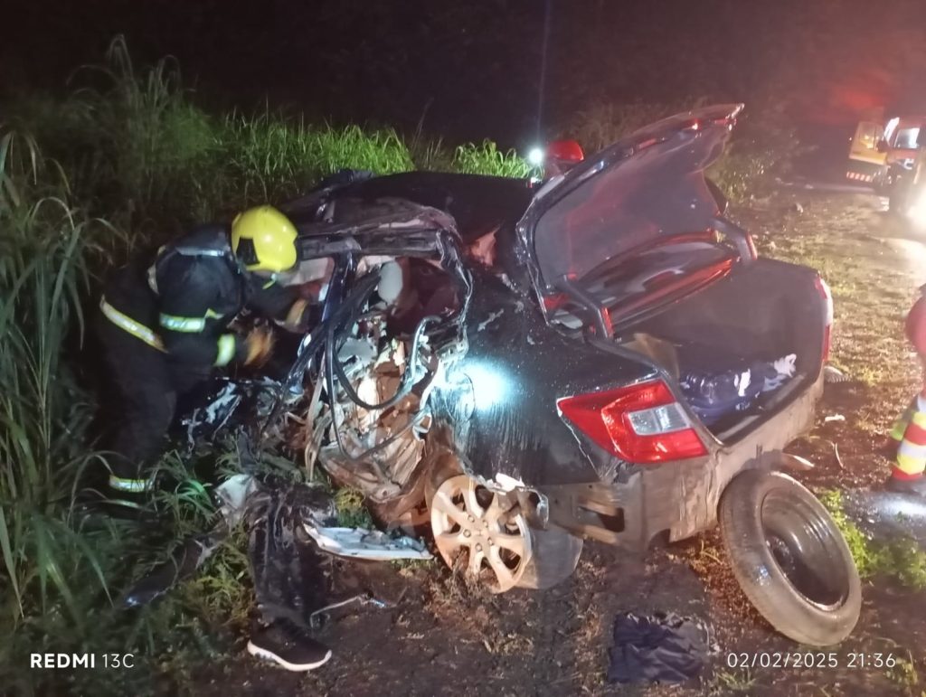 Ainda não há detalhes de como o acidente aconteceu. As imagens feitas no local mostram que o carro ficou totalmente destruído às margens da rodovia.