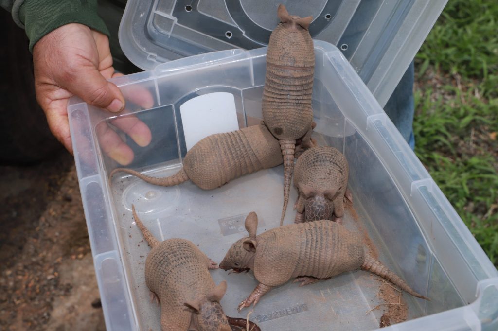Filhotes de tatu são resgatados às margens da BR-153