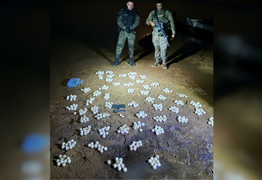 Foram encontradas 15 tartarugas-da-amazônia, 530 ovos e 480 kg pescados, mas os responsáveis não tinham documentos que autorizavam o transporte dos animais. Com o flagrante por crime ambiental, a polícia lavrou auto de infração no valor de R$ 10,2 mil contra os responsáveis e referentes à lei de crimes ambientais.