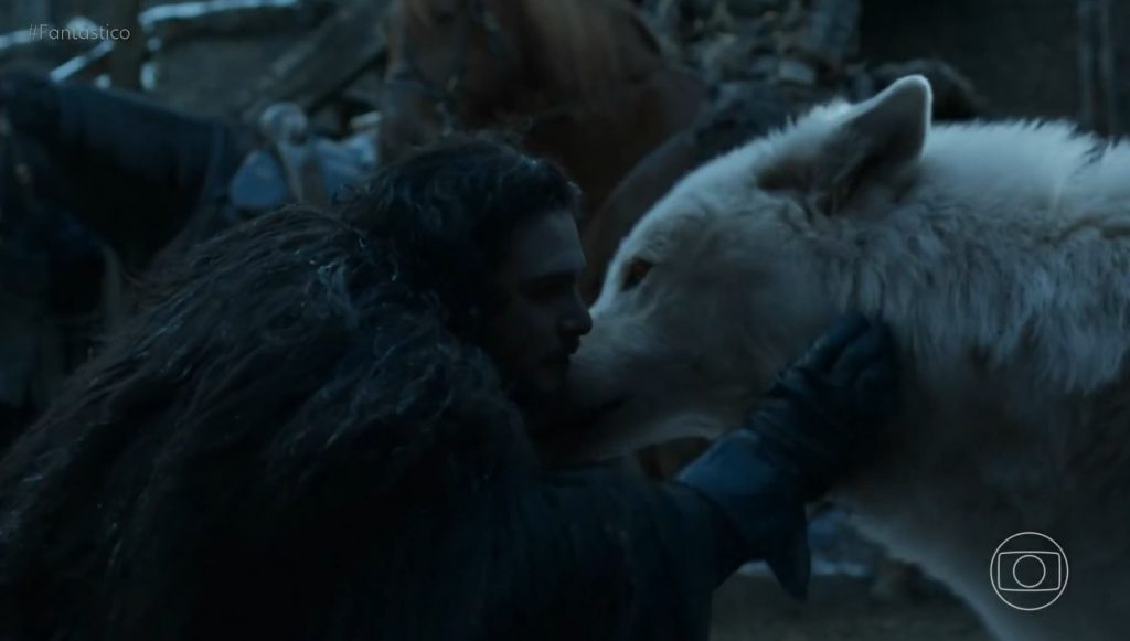 Cena de Game of Thrones com lobo-terrível