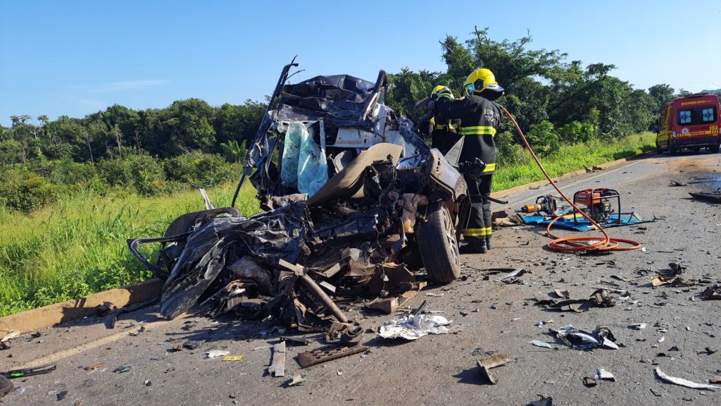 Policial penal, mãe e avó morrem em acidente entre carro e caminhão na BR-153