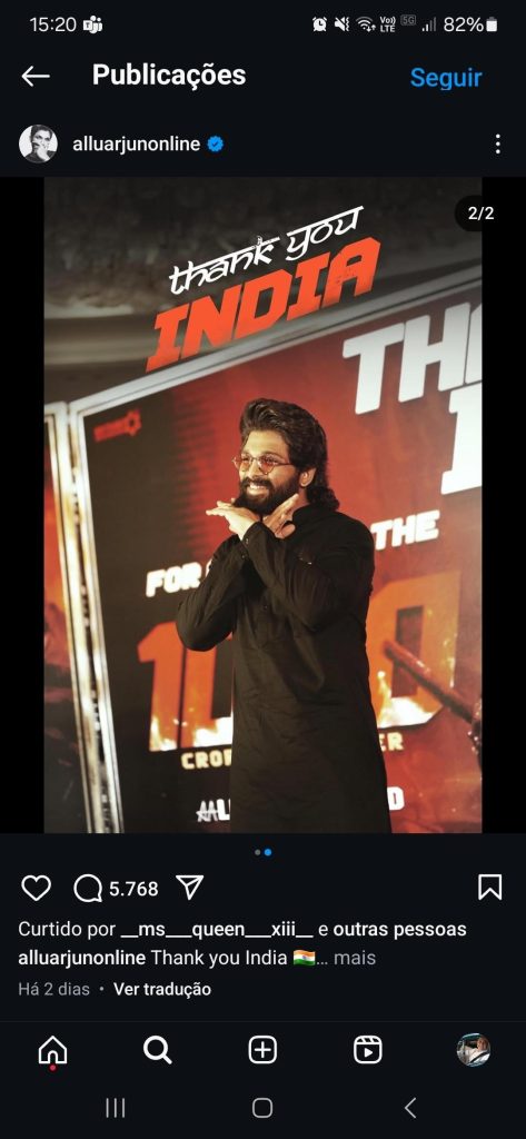 Allu Arjun, proeminente no setor cinematográfico de Telugu — nos Estados de Andhra Pradesh e Telangana, no sul, onde as estrelas de cinema são reverenciadas por fãs obstinados –, apareceu na estreia do filme em Hyderabad em 4 de dezembro.