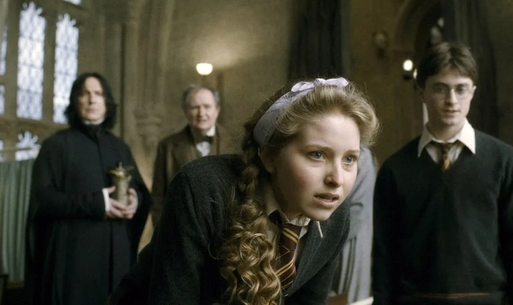‘Vou fazer coisas muito sensuais com meu cabelo’, promete Cave, enquanto mexe nas madeixas no vídeo. Jessie Cave como Lilá Brown, em ‘Harry Potter e o Enimiga do Príncipe’