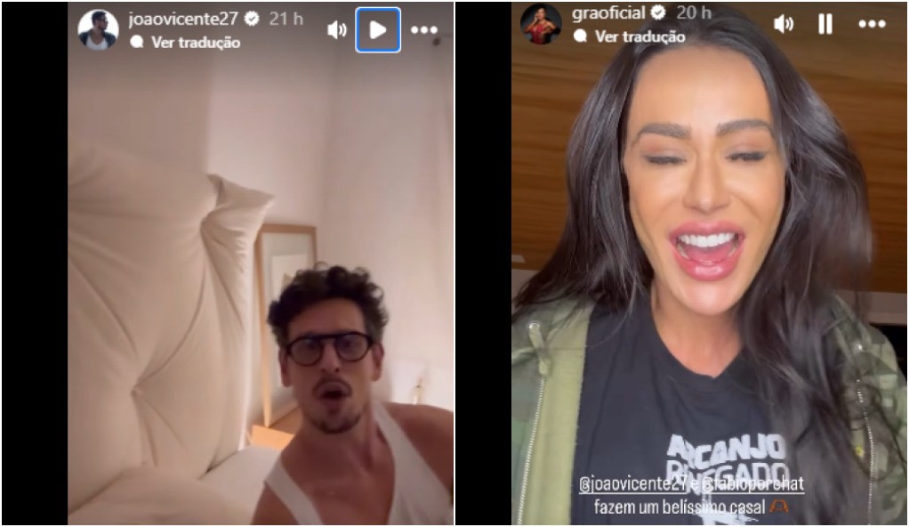 Gracyanne repostou o story dando risada. Ela também gravou um vídeo, em que diz: “Eu sabia o tempo todo desse casal, e as pessoas achando que era eu. Que loucura, a gente está dando muita risada, eu e o João. Não tem nada a ver”.