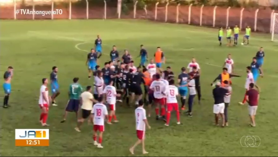 Segundo a polícia, a briga começou após equipe do Oliveira Futebol marcar o terceiro gol contra o Kasol, no estádio Mirandão. Durante o tumulto, dois jogadores foram levados ao Hospital Regional de Miracema com ferimentos. Jogo de futebol amador termina com briga generalizada