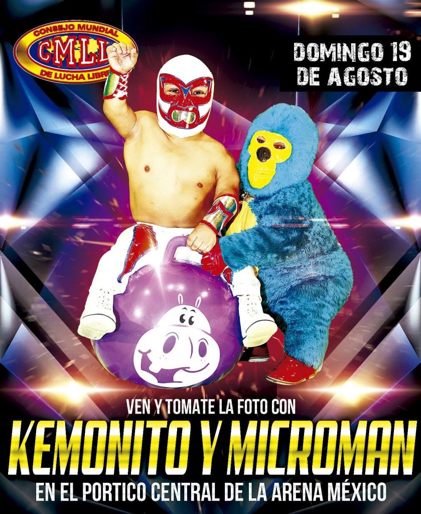 Cartaz de evento de ‘lucha libre’ mexicana mostra Kemonito e seu filho, Microman, em 2018
