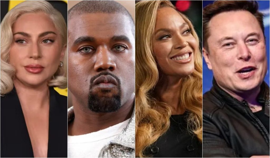 Posicionamento de celebridades é considerado decisivo para estimular eleitores a irem às urnas nesta terça; veja lista de celebridades que revelaram seus votos. Da esq. para a dir., Lady Gaga, Kanye West, Beyoncé e Elon Musk