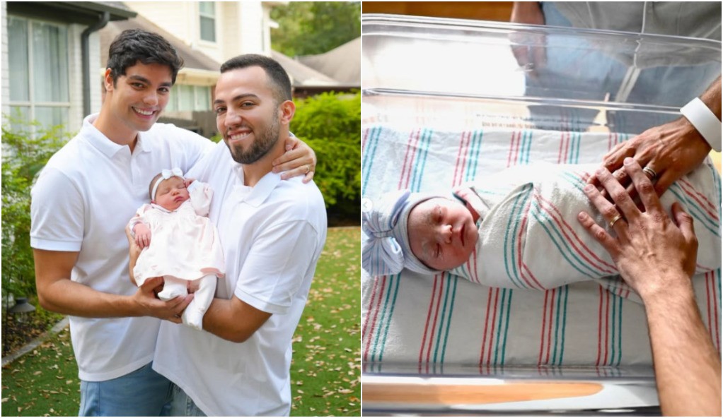 Lucas Rangel e Lucas Bley anunciaram o nascimento da primeira filha do casal, Mia, nesta quarta-feira (8). Os influenciadores publicaram uma foto em que aparecem juntos segurando a bebê, que foi gestada nos Estados Unidos.