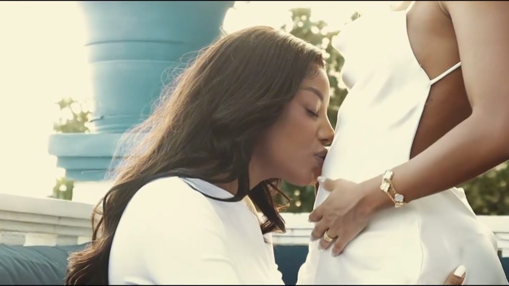 No vídeo exibido no show e postado nas redes, Ludmilla aparece pintando um quadro, enquanto Bruna enquanto Bruna dança, em movimentos suaves. A pintura, que inicialmente não revela sua forma, transforma-se no desenho de um bebê. No momento em que a gravidez é anunciada, o vídeo ganha cores, simbolizando a nova fase na vida do casal.