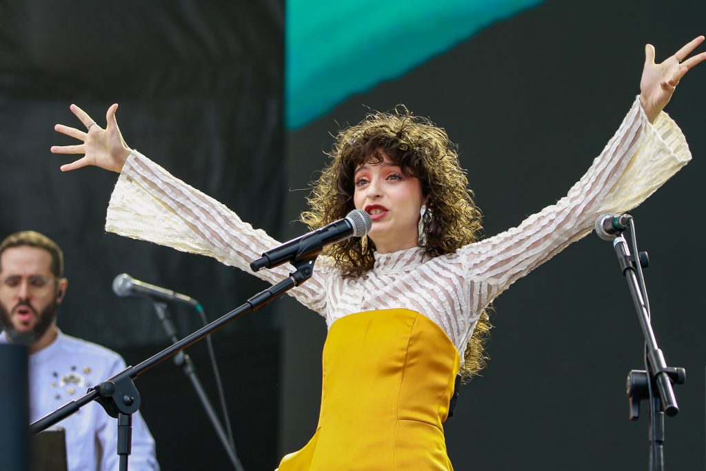 Sofia Freire foi a primeira artista a se apresentar no palco do Lollapalooza neste domingo, último dia de festival. A cantora Sofia Freire se apresenta no último dia Lollapalooza