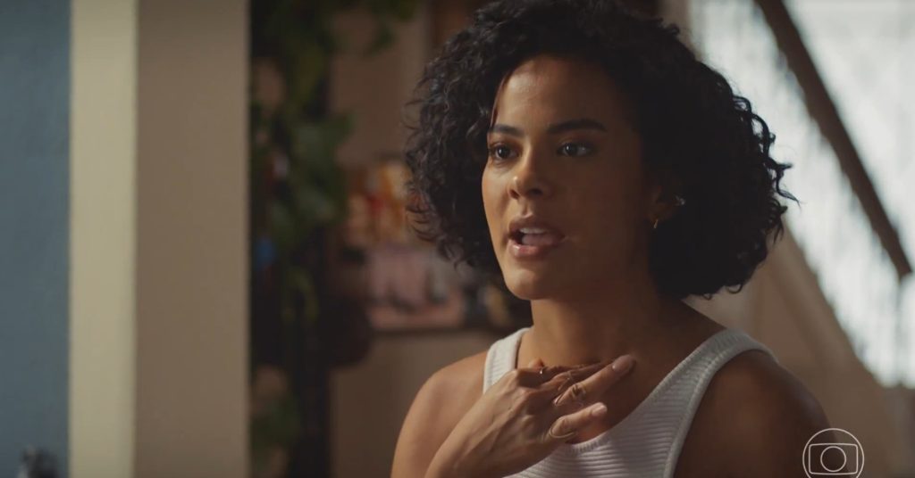 Papel de Bella Campos, a personagem briga com sua mãe, Raquel Acioli (Taís Araújo), em cena que está viralizando. Bella Campos em cena de ‘Vale Tudo’