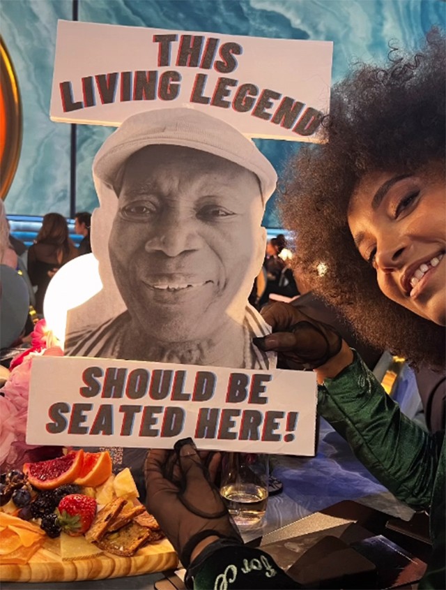 Como forma de protesto, a cantora, compositora e contrabaixista norte-americana foi ao Grammy com um cartaz com a foto de Milton em que lia-se “This living legend shoud be seated here”. Em bom português, “Esta lenda viva deveria estar sentada aqui”.