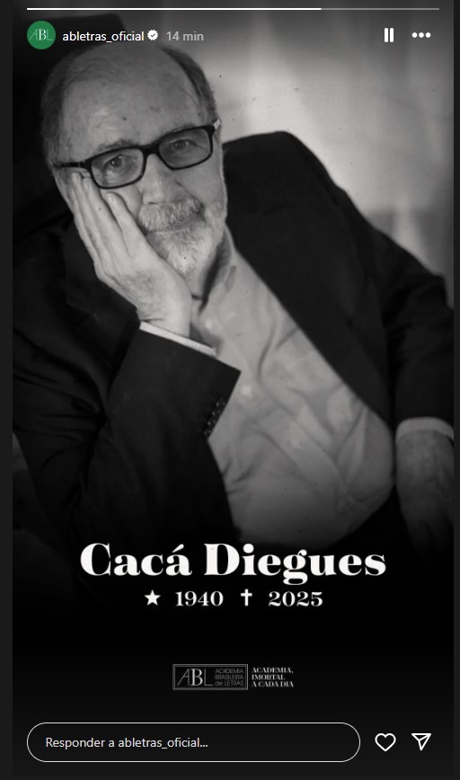 Cacá Diegues faleceu após complicações em uma cirurgia. Ele foi homenageado pela Academia Brasileira de Letras em uma publicação nas redes sociais.