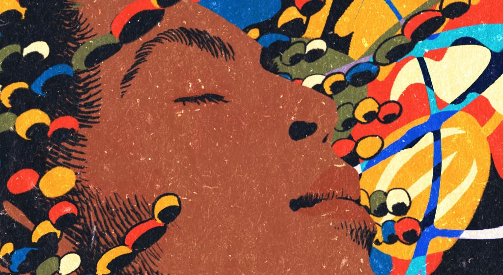 Ilustração de Gilberto Gil na capa do EP ‘Gil by Alok & friends – Remixes’