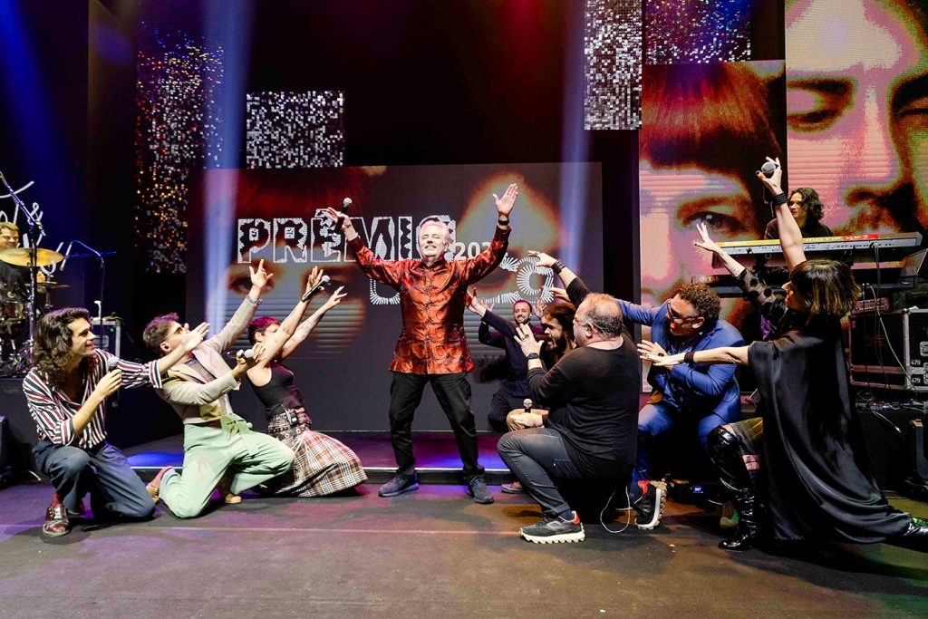 Kell Smith, Pitty, Zé Ibarra e Fernanda Abreu se destacam em números musicais com sucessos da parceria do casal na entrega do oitavo Prêmio UBC. Elenco de cantores do Prêmio UBC 2024 saúda Roberto de Carvalho ao fim da cerimônia que laureou a parceria do compositor com Rita Lee