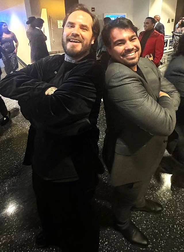 Dani Pampuri (à esquerda) e Matheus Braz nos bastidores do Grammy 2025