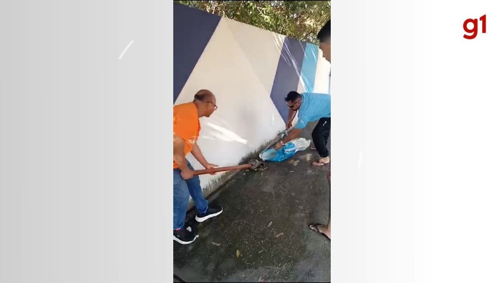 Sucuri enrolada em motocicleta na frente de escola é capturada por diretor e motorista da unidade: ‘Fazer do medo a coragem’