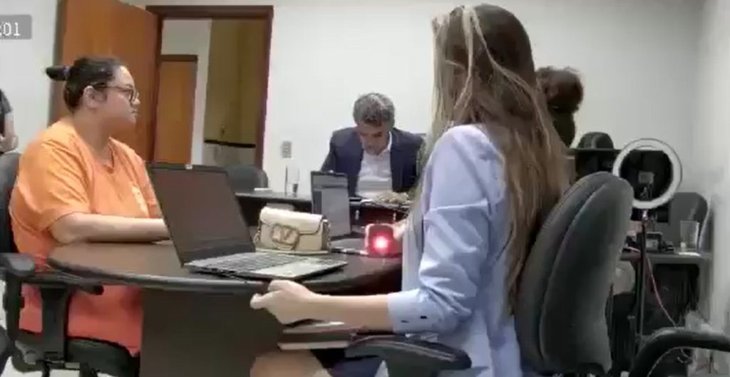 “Por favor, excelência, meu celular está todo bloqueado. Eu faço esse compromisso [de não mexer no dinheiro]”, comentou a investigada durante a audiência, acompanhada da defesa.