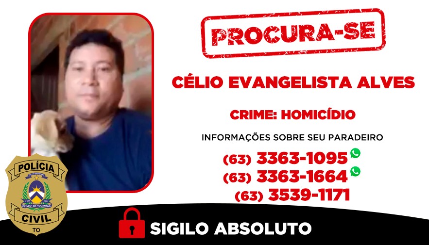 Participe do canal do g1 TO no WhatsApp e receba as notícias no celular.O suspeito foi identificado como Célio Evangelista Alves, de 38 anos. Segundo o delegado responsável pelo caso, Túlio Mota, o crime aconteceu por motivo torpe e meios que dificultaram a defesa da vítima. Um mandado de prisão preventiva foi expedido pela Justiça, mas o homem não foi encontrado.