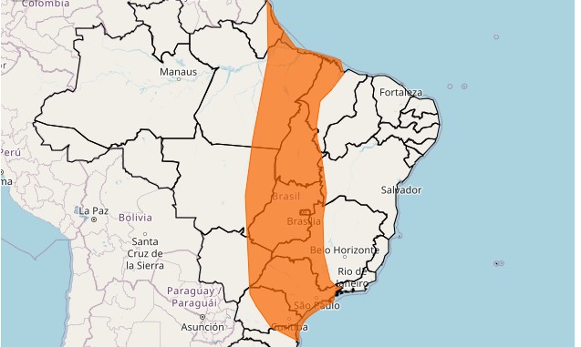 De acordo com o Instituto Nacional de Meteorologia (Inmet), o alerta tem grau de severidade que representa perigo. São esperados até 100 milímetros de chuva por dia e ventos intensos com mais de 60 km/h.