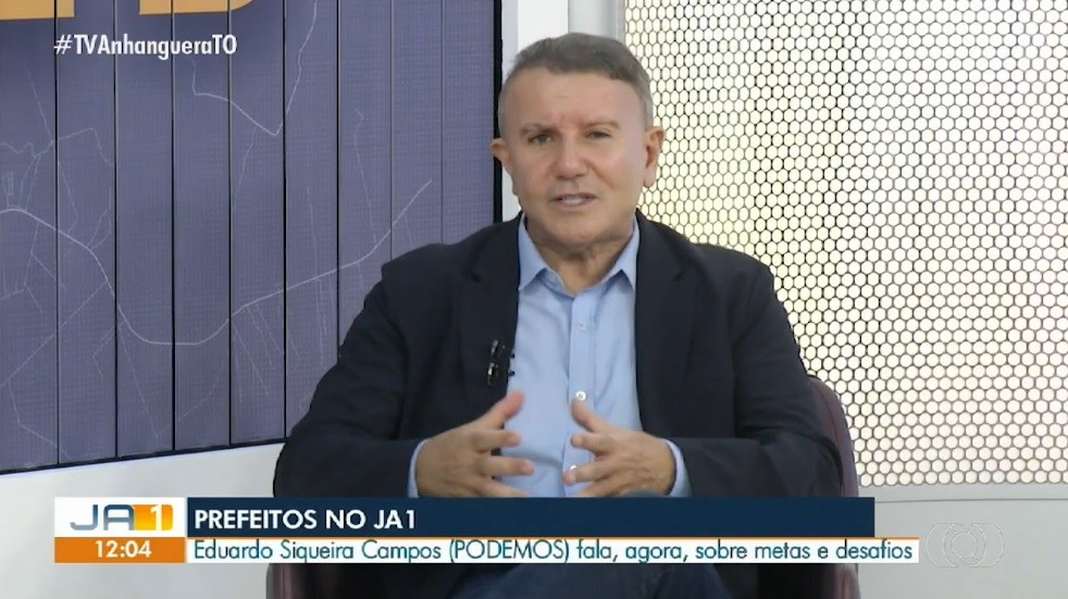 Eduardo Siqueira Campos (Podemos) esteve no Jornal Anhanguera 1ª edição desta quinta-feira (2) para entrevista ao vivo. Veja como foi. Prefeito Eduardo Siqueira Campos é entrevistado no JA1
