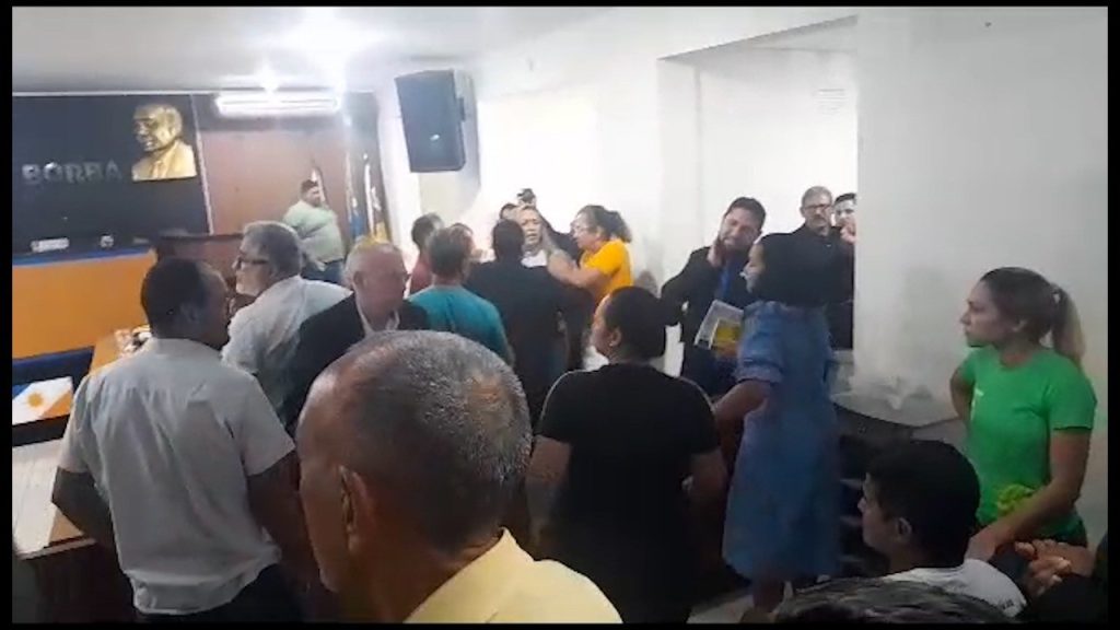 Vídeo mostra briga e arremesso de objetos entre vereadores durante sessão: ‘me chamou de vaca’