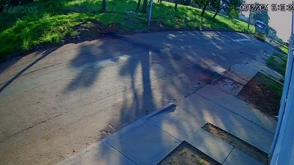 Participe do canal do g1 TO no WhatsApp e receba as notícias no celular.As imagens mostram o ônibus escolar e a moto trafegando pela Avenida B na mesma direção. Em um momento, os dois veículos direcionam para entrar em uma rua. Durante a curva, o ônibus, que estava à esquerda, bate na moto que vai parar debaixo do veículo escolar.