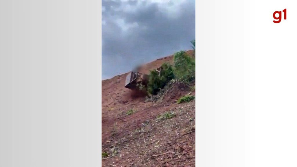 Nas imagens é possível ver a dinâmica em que o operador trabalhava e o momento que perde o controle do trator. O veículo tomba ao tentar derrubar uma das árvores e sai rolando morro abaixo (assista acima).