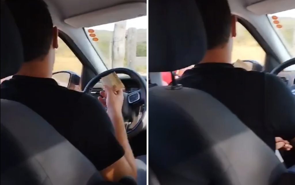 O vídeo é filmado de dentro do carro dos turistas. Uma mulher no banco do passageiro pergunta para o homem que está ao lado da porta do motorista: “Tenho cinquenta. Serve?”. O motorista pega a nota e entrega para a pessoa que aguardava o pagamento do lado de fora.